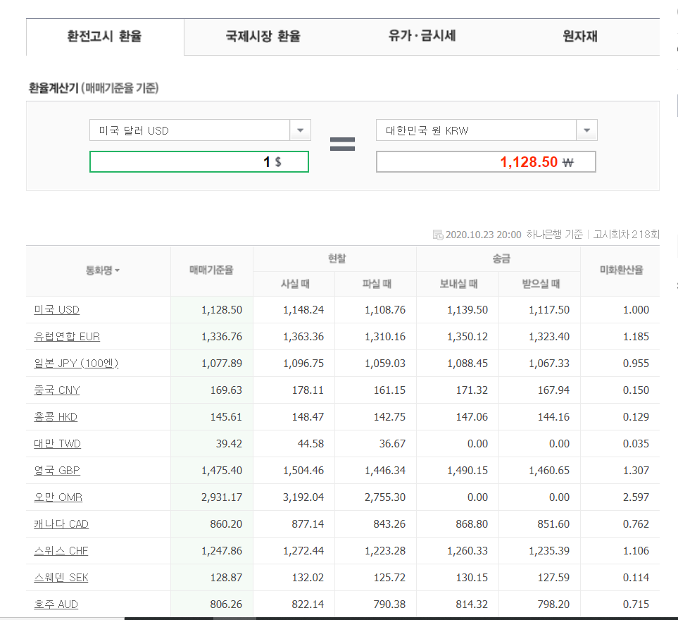 그래서 지금의 국제금융시장을 보면 달러/유로와 국제 금의 미약한 상승 말고는 모두 환율의 하락세를 보이고 있습니다. 참고로 이러한 국제동향을 알고 있으려면 그저 적금이자가 높은 은행만 쫓을 것이 아니라 이런 원달러환율, 엔화환율, 중국환율 등에 관심을 가지는 것이 좋습니다. 그래서 저는 환율계산기, 유가와 금시세를 바로 알려주는 링크를 즐겨찾기 해놓고 뉴스보다 먼저 보는 습관을 가지고 있답니다. 필요하신 분들은 환율계산기와 실시간국제유가 등을 볼 수 있는 아래 링크를 참고하시면 됩니다.