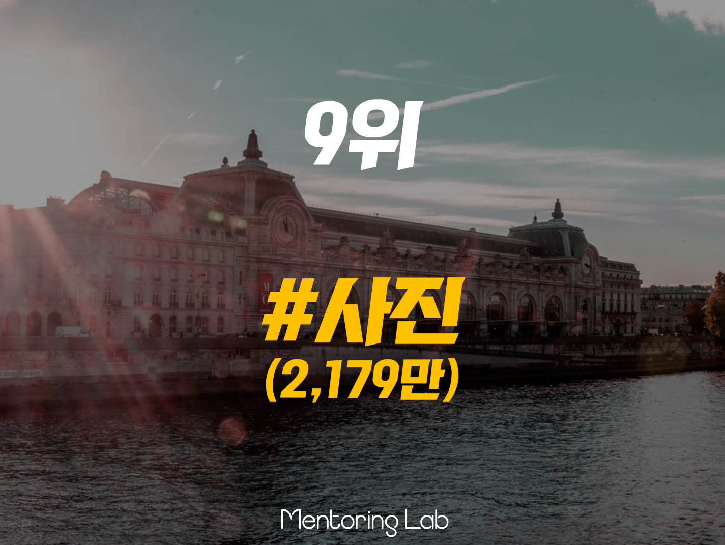 9위는 #사진 입니다. 2,179만개의 해시테그가 인스타그램에 달려있네요. 저는 인스타그램하면 곧 사진이 떠올라서 더 높은 랭킹에 올라있을 줄 알았는데 9위라서 조금 의아해했습니다. 다르게 말하면 #사진 키워드 보다 더 높은 트래픽을 가진 해시테그가 있다는 말이니... 아직은 예측하기 힘드네요.