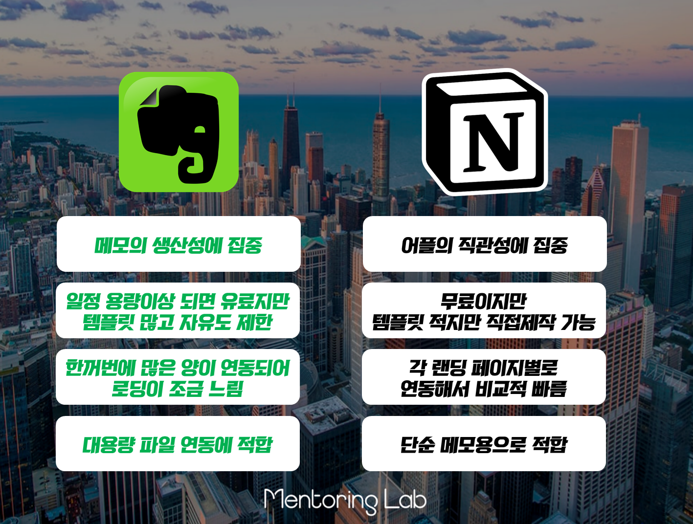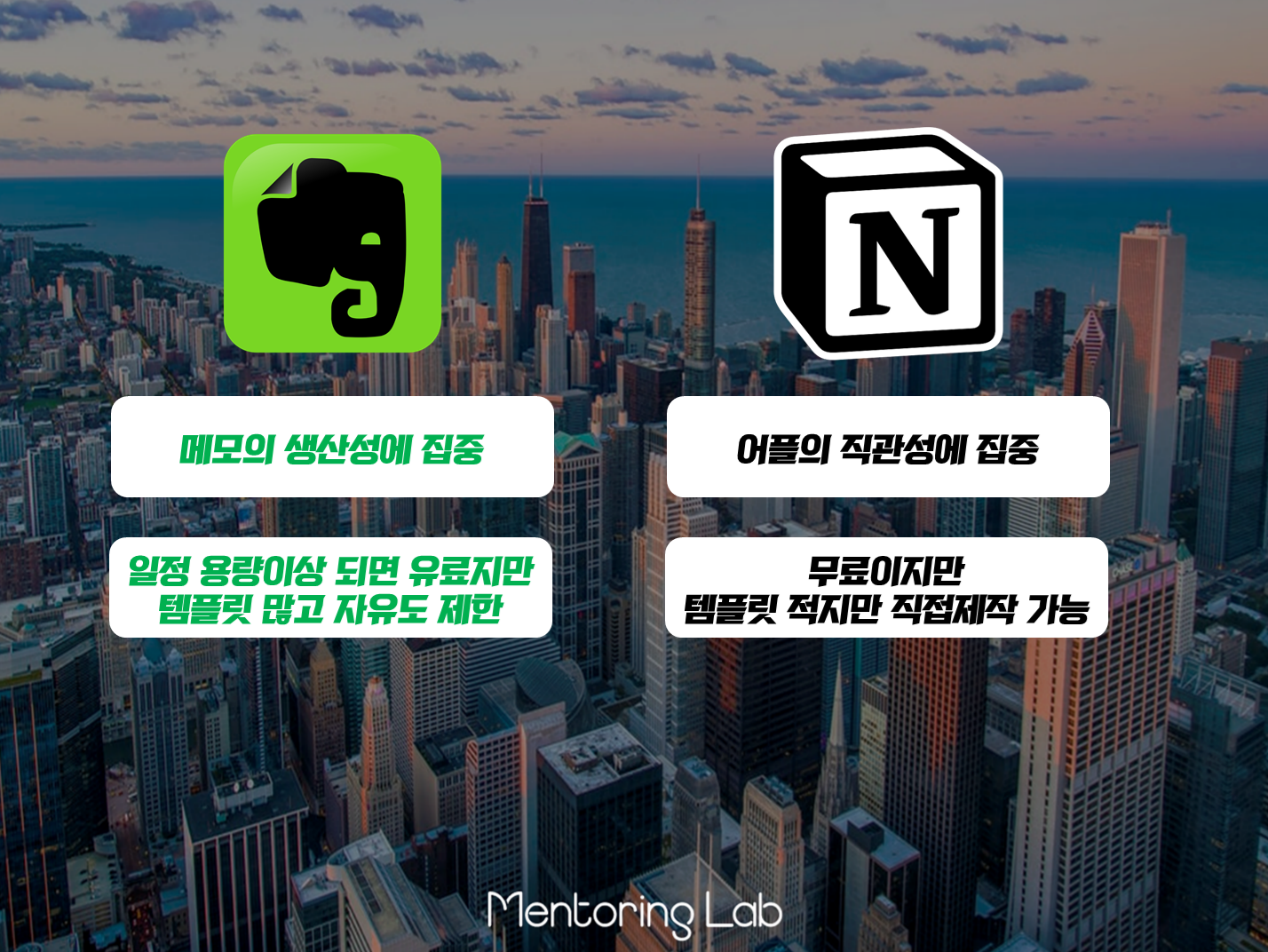마지막으로 생산성 메모 앱 에버노트와 노션의