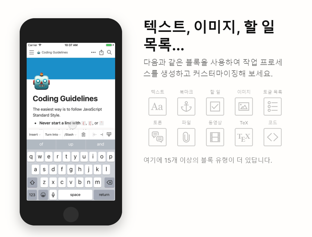 노션은 앱을 사용자가 직관적으로 원하는 대로 편집할 수 있게 만들어