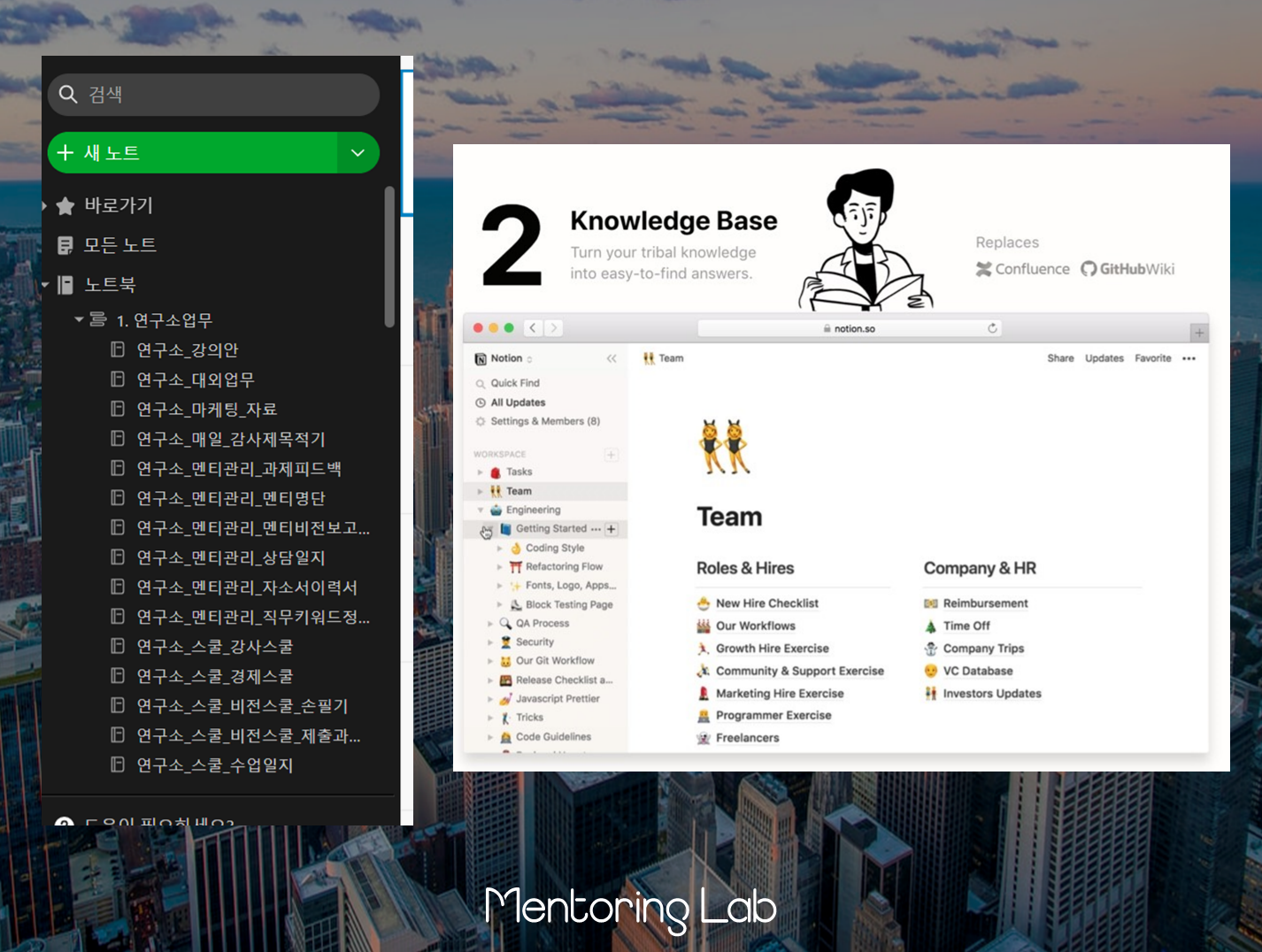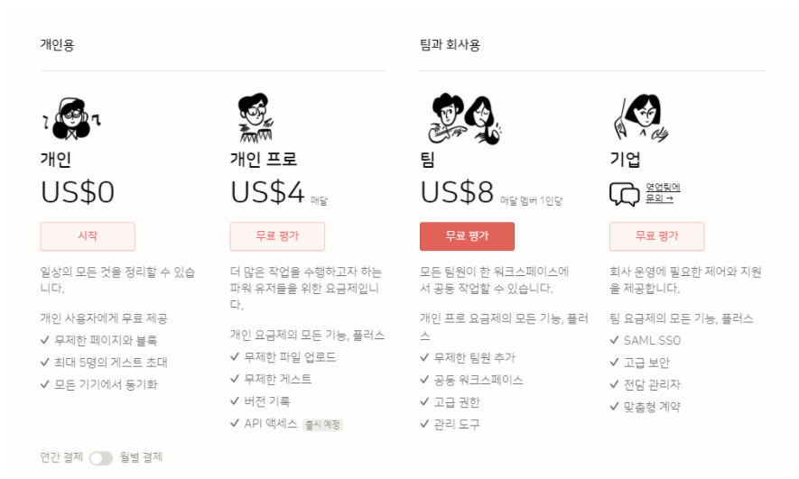 아마도 후발주자인 노션(Notion)은 우리나라의 중소기업이나 스타트업처럼