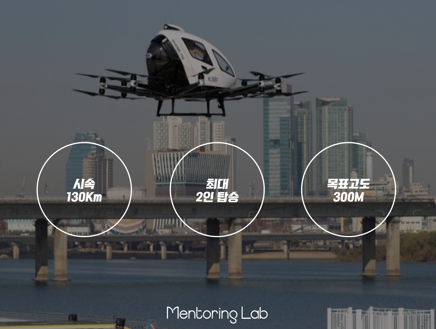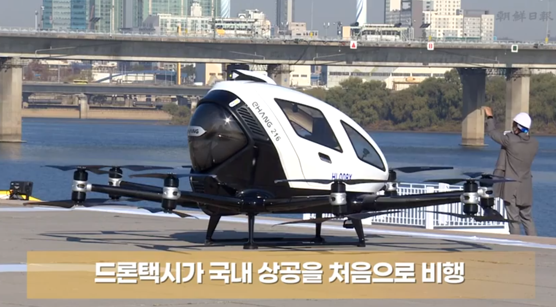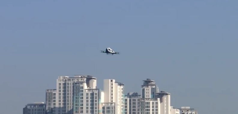 서울 도심 여의도에서 드론 택시가 처음으로 시험 비행을 했습니다.