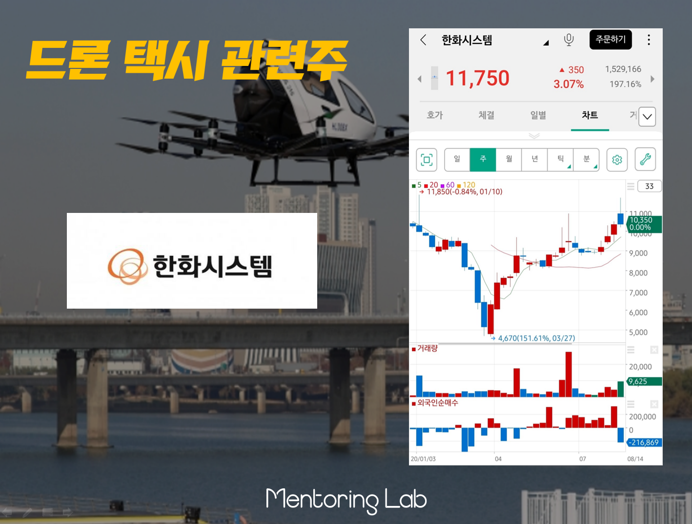 실제로 현대차 그룹은 2028년까지 8인승 드론 택시 기체를 자체적으로 국산개발에 성공해서 상용화할 계획을 가지고 있습니다. 관련 투자가 이미 진행 중이라 항공, 우주분야 전문인력들이 투입된 상황이죠. 하지만 저는 아직 확실한 양성계획이 아니기 때문에 노조 등의 불확실성 때문에 소극 매수에 그치고 있습니다.