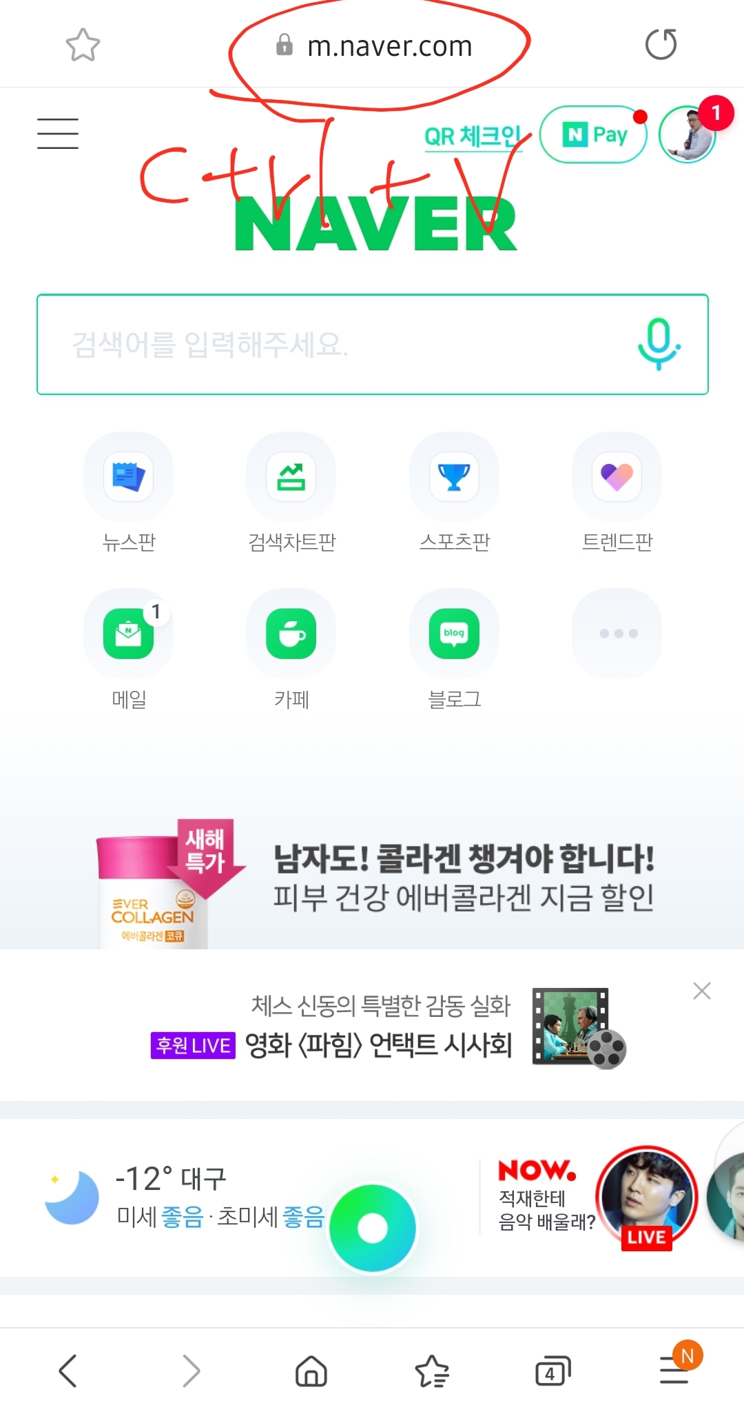 누구나 다 알고 있는 네이버 메인화면에 들어가서 QR코드 인증 버튼 누르는 거 말고,