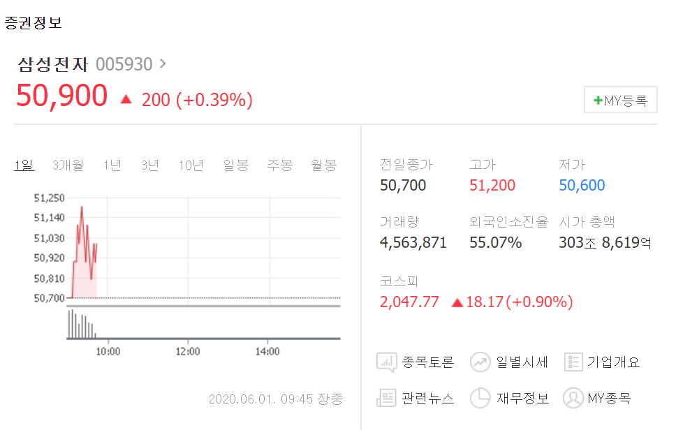 물론 나 또한 삼성전자 주식을 보유하고 있다. 그러나 나는 코로나19 바이러스와 관련된 주식으로 삼성전자가 주목받기 시작하자 대대적인 기사가 난 이후로 딱 3일 정도 기다렸다가 수익을 실현하고 전체 삼성전주 주식 보유량을 60%로 줄였다.