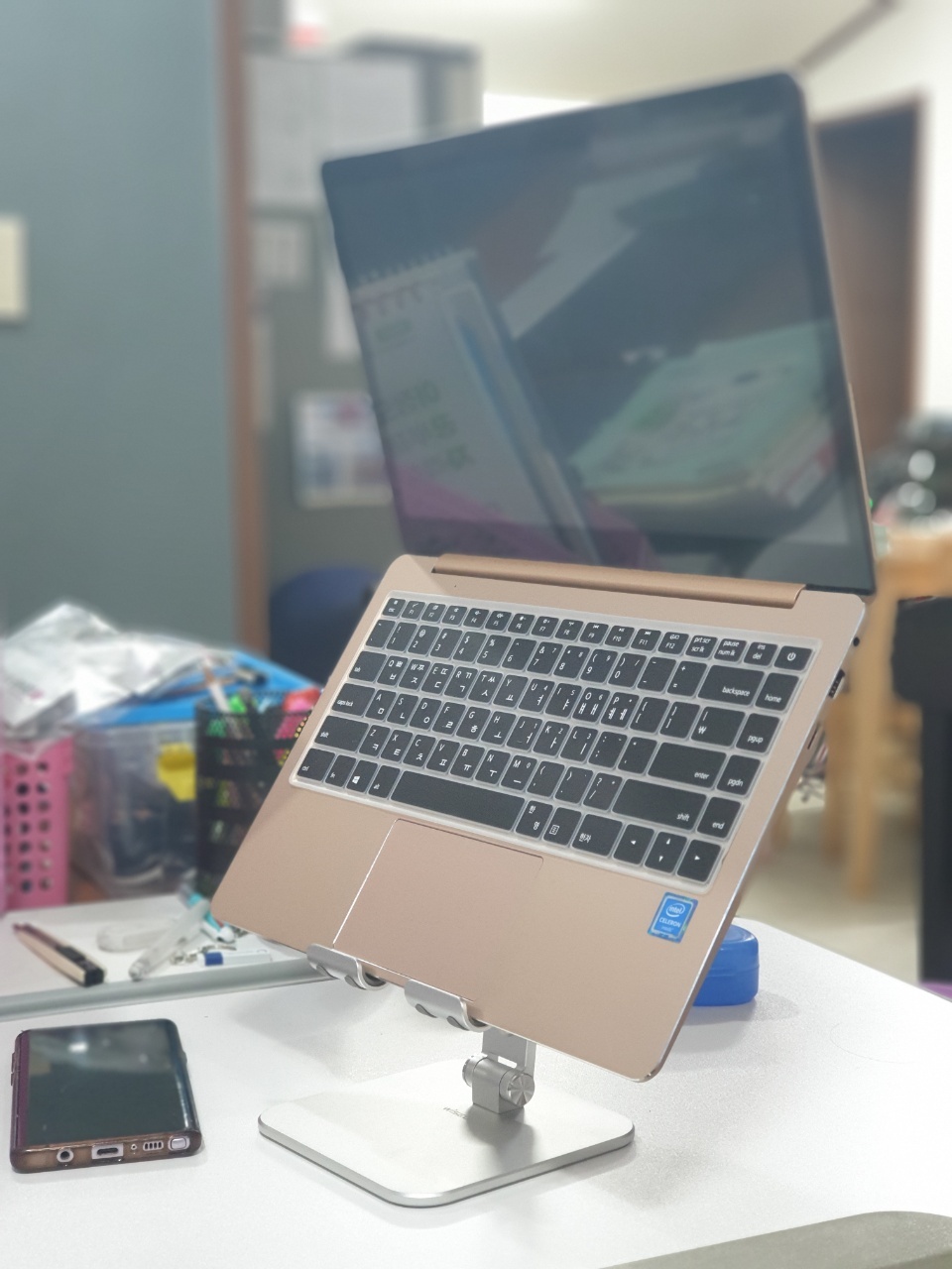 테이블에서 블루투스 키보드로 타이핑을 해도 흔들리지 않네요.