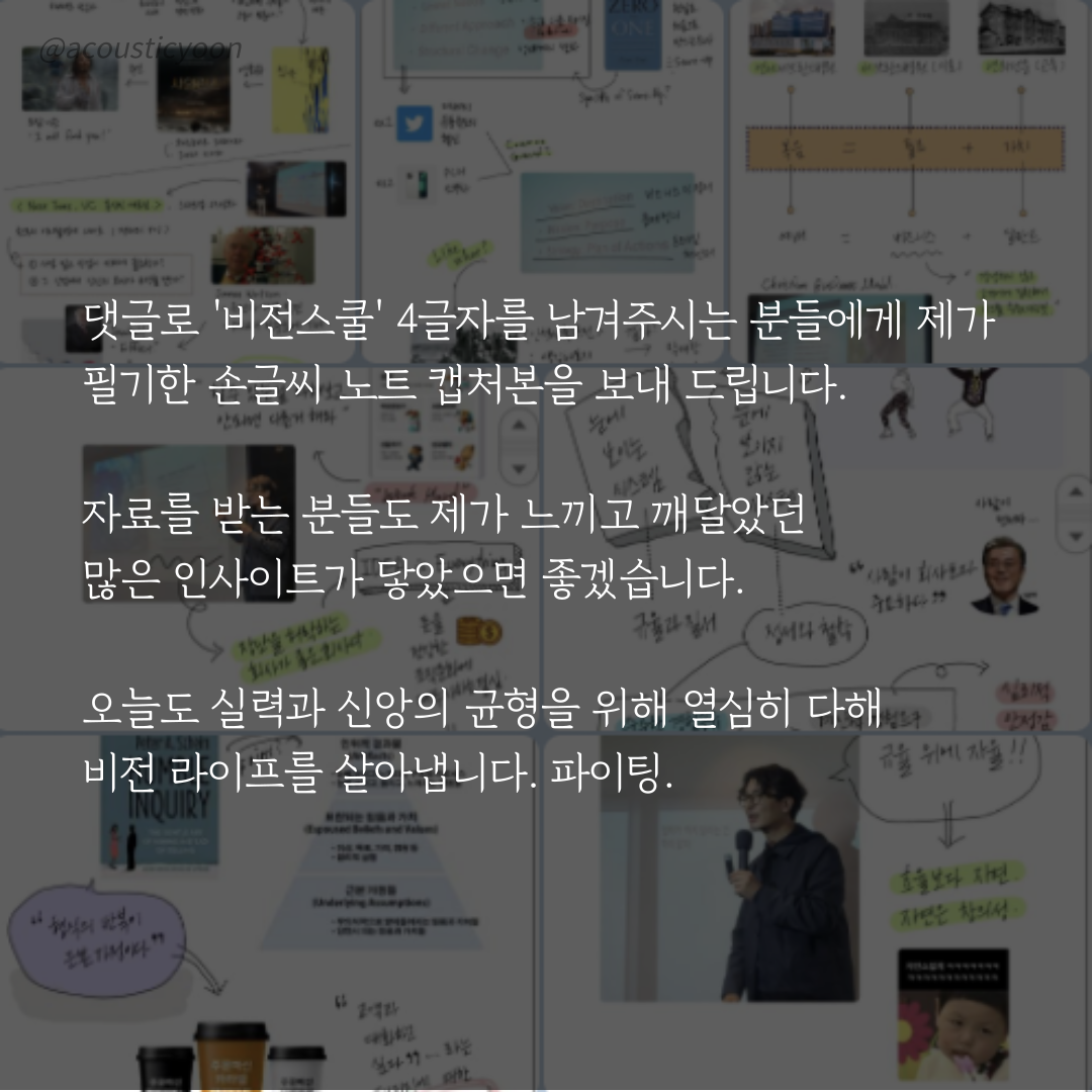 댓글로 ’비전스쿨50기‘ 7글자를 남겨주시는 분들에게 제가 필기한 손글씨 노트 캡처본을 보내 드립니다.
