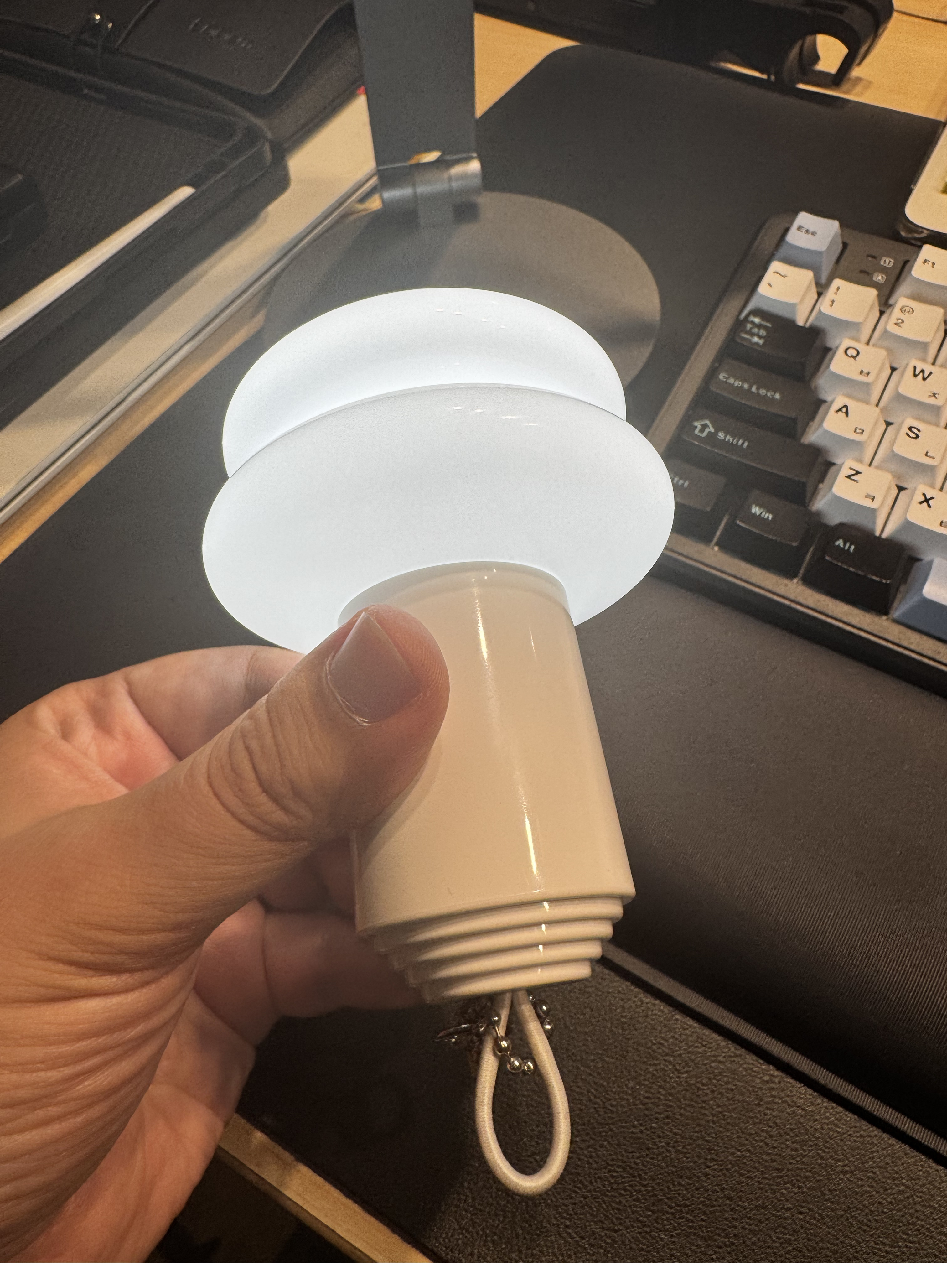 책상에 올려둘 수도 있고 가지고 다닐 수도 있는 미니 조명이야.