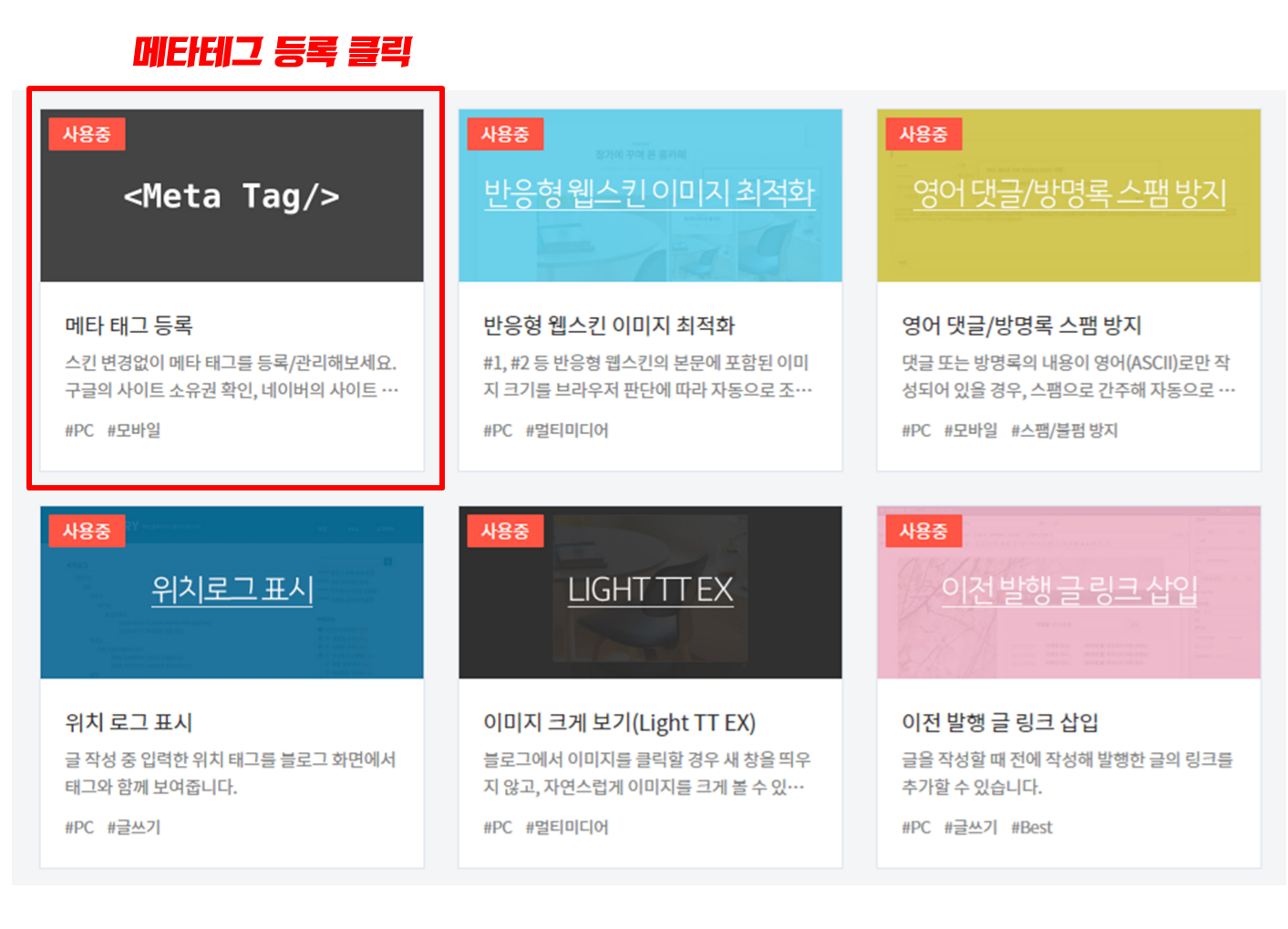 6. 플러그인 중에서 메타테그 등록하기 클릭
