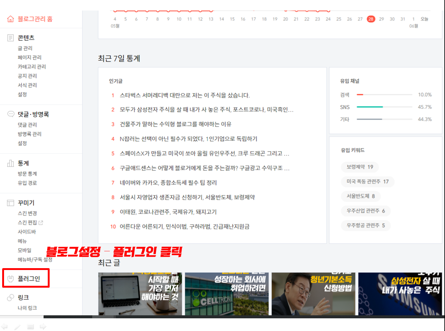 5. 내 티스토리 블로그 - 블로그설정 - 플러그인 클릭