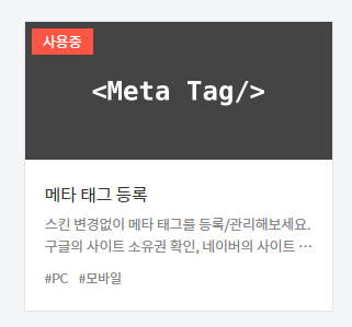 적용버튼까지 눌러주고 다시 플러그인 화면으로 돌아가보면 많은 플러그인 중에서 '메타테그'가 '사용중'이라고 표기된 것을 확인하시면 된다.