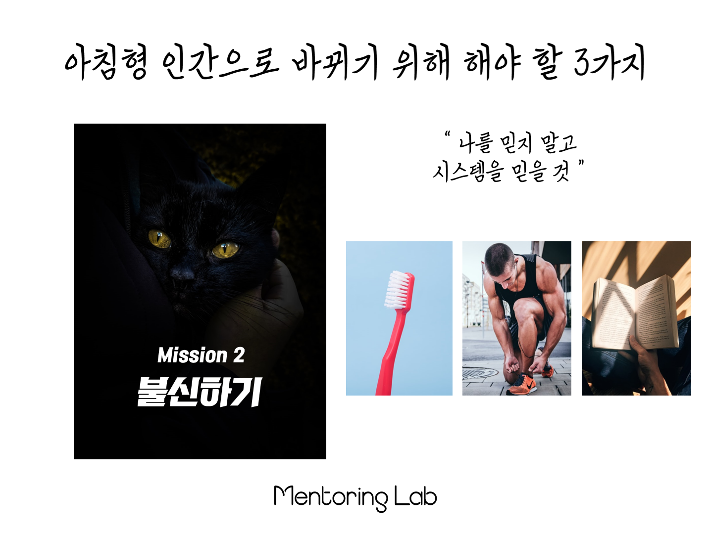 아침형 인간으로 바뀌기 위해 해야할 두 번 째 미션은 ‘불신하기’입니다.