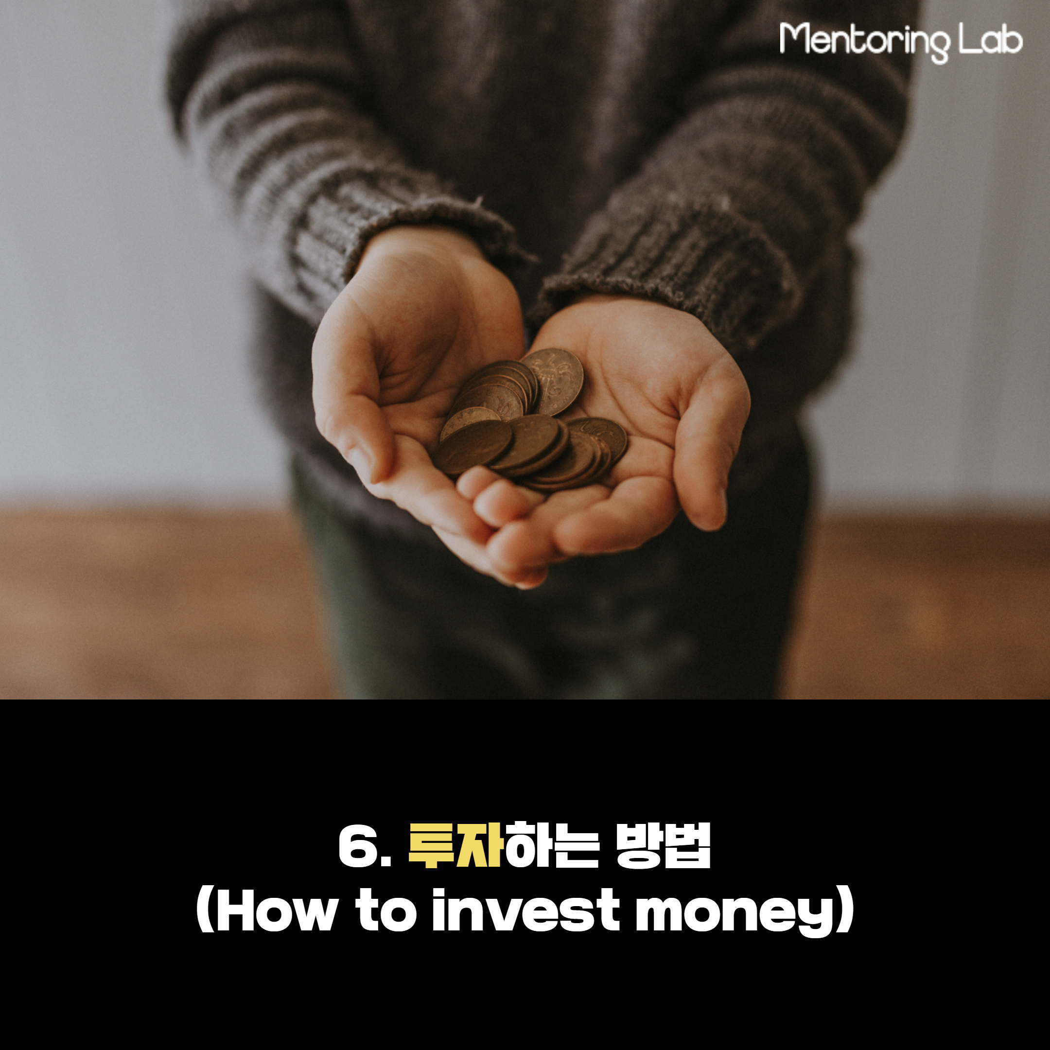 그래서 오늘은 학교에서 가르치지 않는 10가지 중 6번째인 '투자하는 법'에 대해서 다뤄보겠습니다.