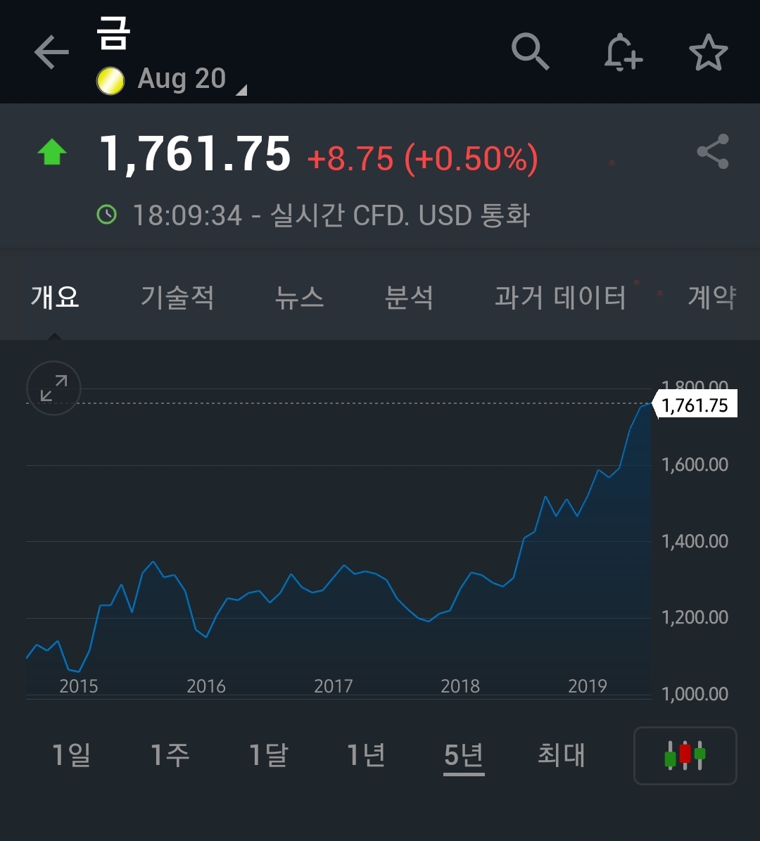 온스당 1,761달러를 넘어섰다.