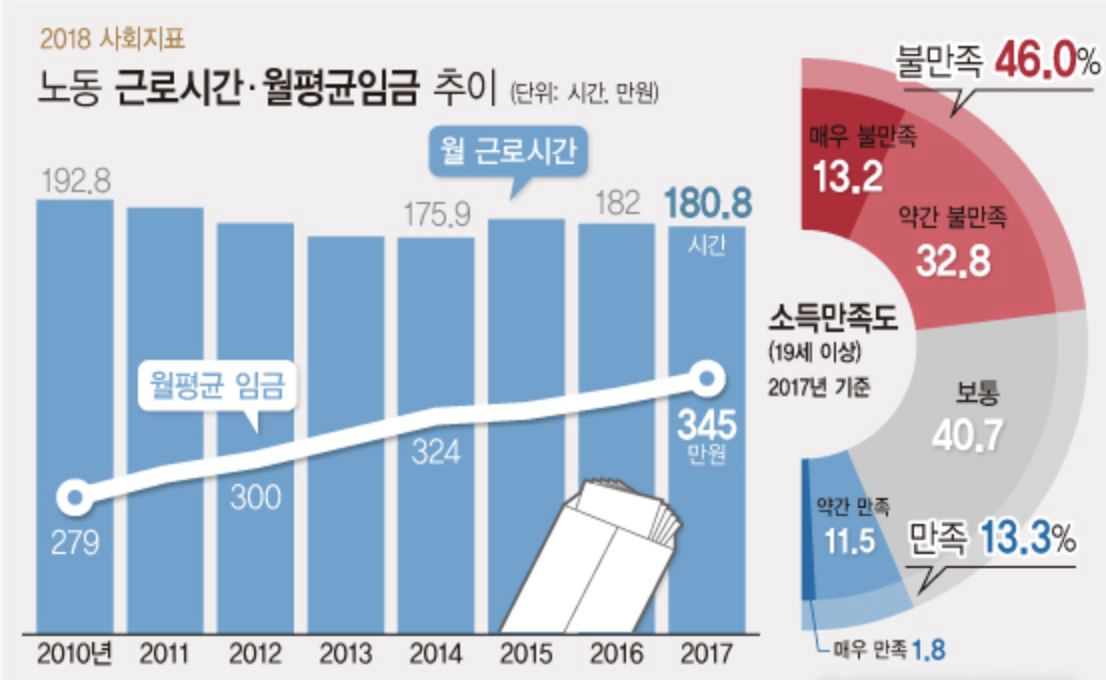 '노동 근로시간과 월평균임금(통계청)'만 봐도